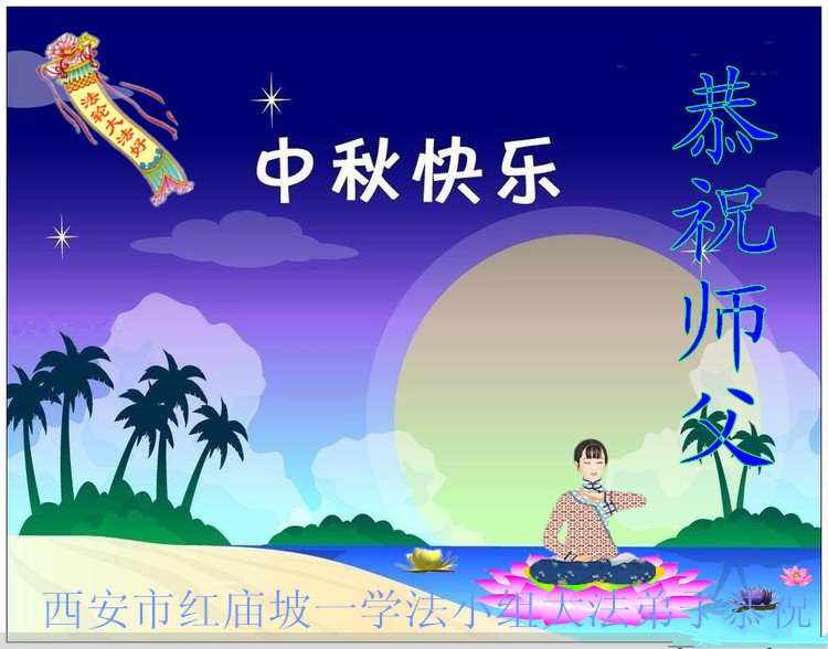 陝西西安市北二環一學法小組大法弟子恭祝師尊中秋節快樂!