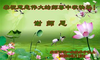 庚子年中秋節即將到來,大法弟子向慈悲偉大的師尊問好,恭祝師尊中秋節快樂!大法弟子謹遵師尊的教誨,精進實修,並向師尊合十叩拜!