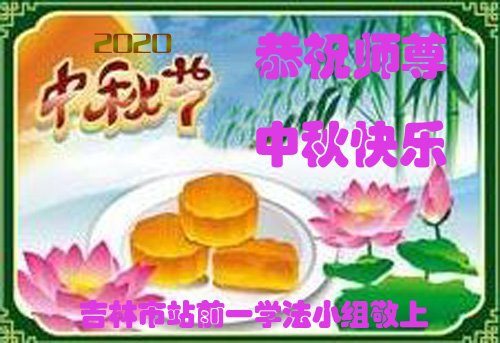 吉林市一學法小組大法弟子在二零二零年中秋節即將到來之際,恭祝法輪大法創始人:李洪志恩師中秋節快樂!