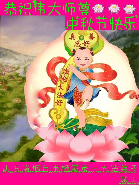 山東煙台開發區一家大法弟子恭祝師尊中秋快樂!