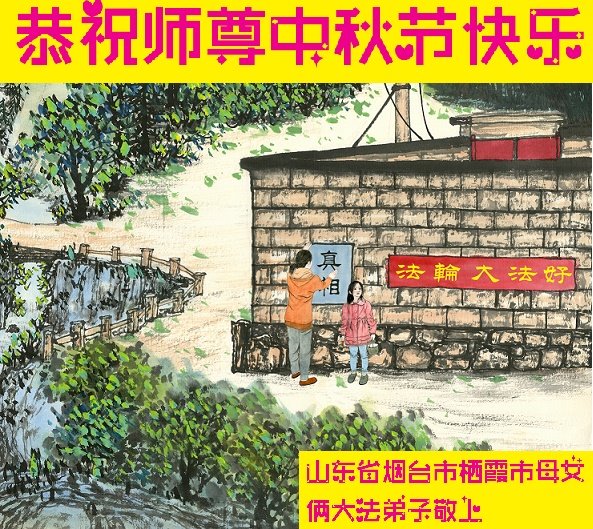 山東省煙台市棲霞市城區一學法小組大法弟子恭祝師尊中秋節快樂!