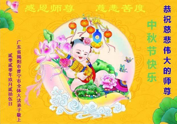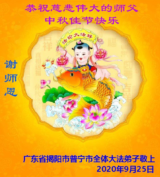 廣東省揭陽市普寧市全體大法弟子恭祝慈悲偉大的師尊中秋節快樂!
