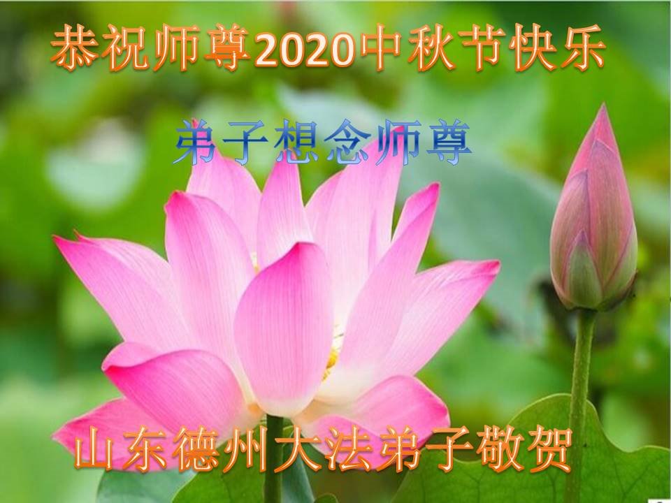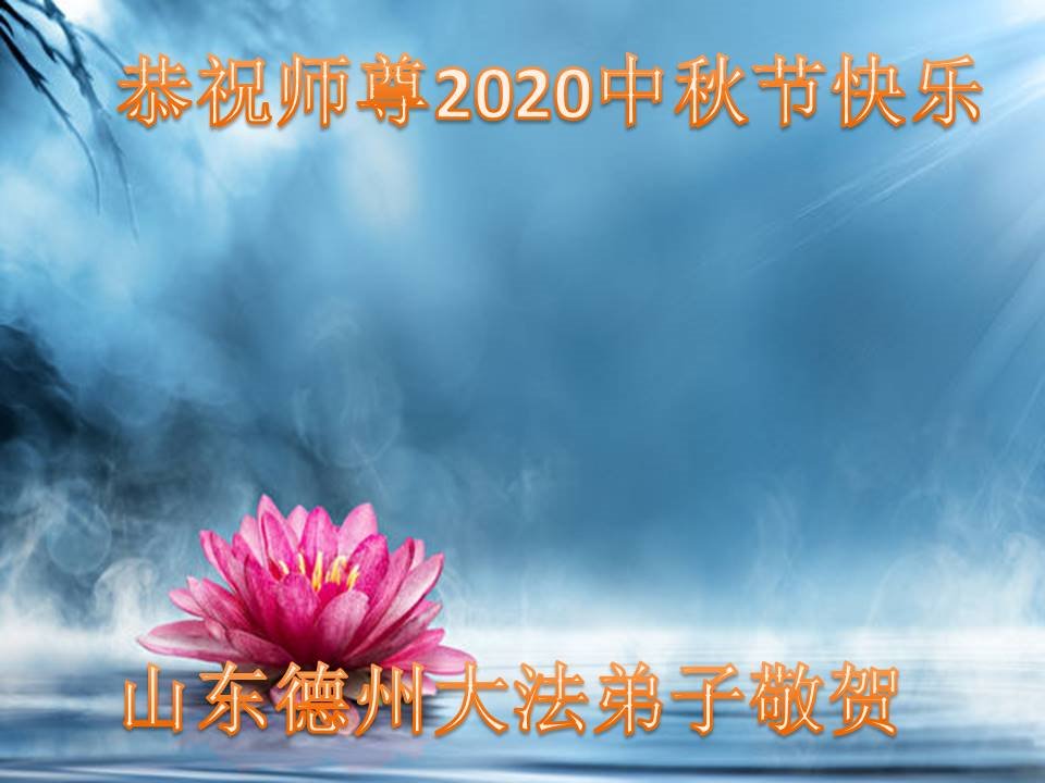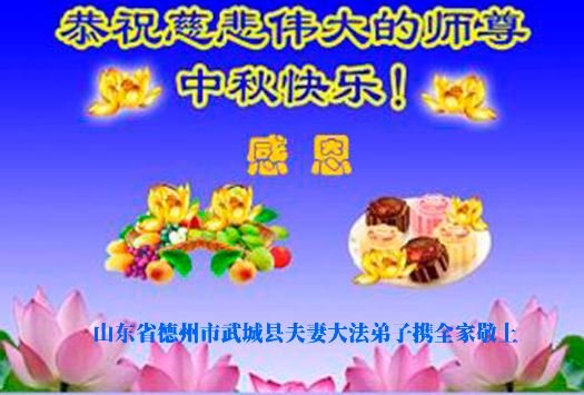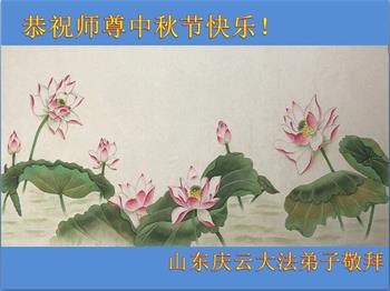 師父您好,中秋節即將到來,山東平原三位大法弟子代表全家恭祝師父快樂!謝謝師父慈悲救度,一路保護。師恩重,何以報。正法即將結束,在有限的時間裏,弟子努力修好自己,跟師父回家。