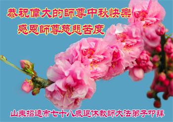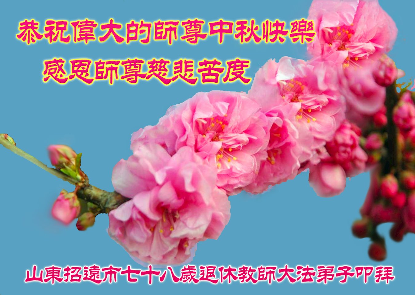 山東省煙台市招遠市七十八歲退休教師大法弟子恭祝慈悲偉大的師尊中秋快樂!