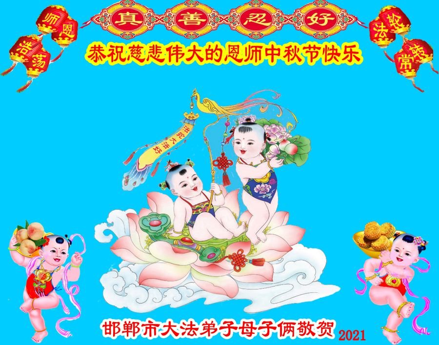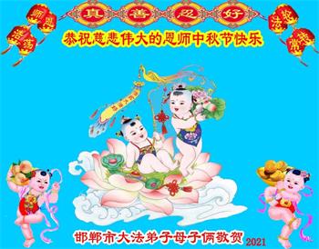 河北省邯鄲大法弟子母子倆恭祝慈悲偉大的師尊中秋節快樂!