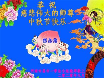 我們大家庭小家庭都在大法中受益,小家就是我自己的家庭,大家就是我們的親朋好友都明白了真相,有的也走入了修煉,我們的整個大家庭恭祝慈悲偉大的師尊中秋節快樂!感謝師父的洪恩救度,在師父給眾生延續來的時間裏,我們要精進實修,圓滿隨師還。