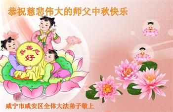 在此恭祝您中秋節快樂!弟子有幸能在師尊的慈悲保護下,堅定做好三件事:學好法,發好正念,救度眾生。我們大陸弟子都非常想念您,我有師父真好,感恩師尊的苦度。謝謝師尊!