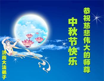 中秋到了,我們大法弟子三人和我全家向偉大的師父問好,師父辛苦了!謝謝師父這些年的慈悲保護,請師父放心,弟子在以後的時間裏一定勇猛精進,做好三件事,跟師父回家!