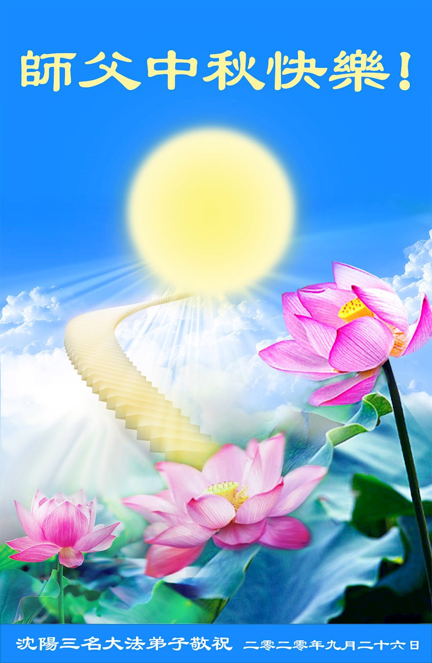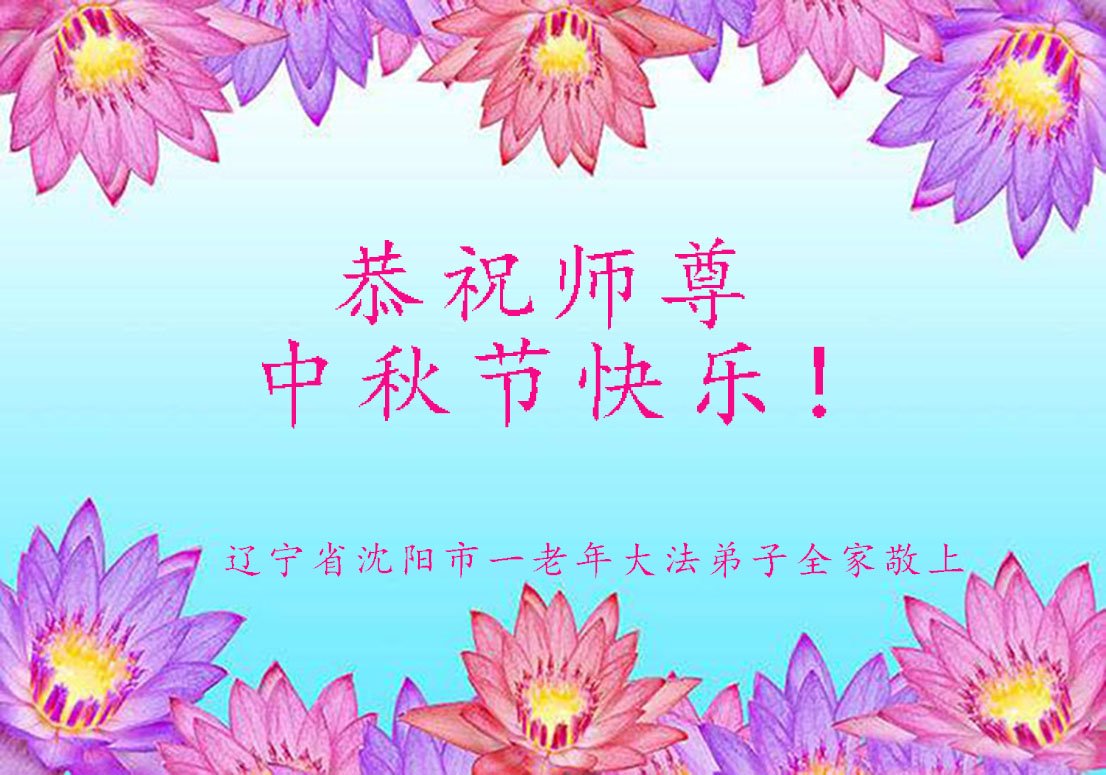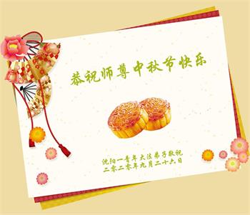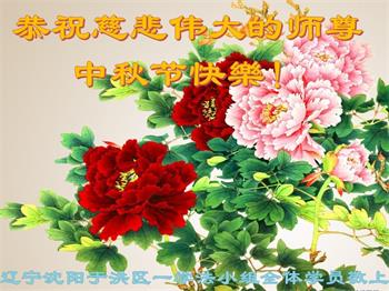 我們是瀋陽市一學法小組大法弟子,在中秋佳節到來之際,恭祝偉大的師尊中秋快樂!我們一定在最後的有限時間裏,抓緊時間多學法,學好法,多救人,做好三件事,不辜負師尊的慈悲苦度,圓滿隨師還。