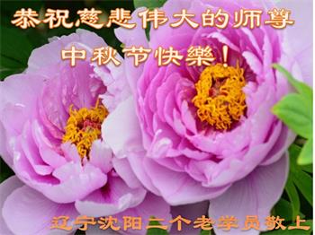 遼寧瀋陽二個老學員恭祝師尊中秋節快樂!