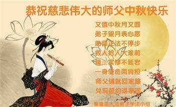 在中秋佳節到來之際。我們學法小組全體同修恭祝師父中秋節快樂!在當前大瘟疫流行的情況下,我們要抓緊時間救度眾生,珍惜師父延長的時間,做好「三件事」,圓滿隨師還。