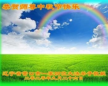 在這金秋時節,我們迎來了一年一度的中秋佳節。中國人有句俗話說:每逢佳節倍思親。的確,我們遼寧省營口市全體大法弟子由衷的感恩師尊、想念師尊。