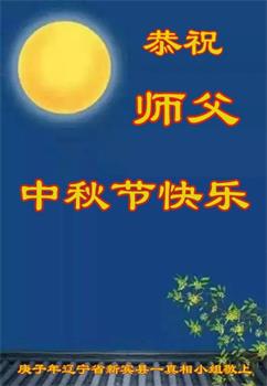 又是一年中秋節,中秋月圓闔家團圓,思念遠方的親人。弟子盼望早日見到師父。弟子想念您。弟子以法為師,努力做好三件事,全盤否定舊勢力,滅盡一切邪惡。喚醒眾生。早日恭迎師父回到神州大地。