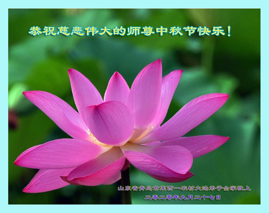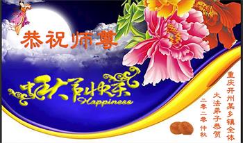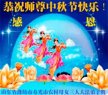 我是農村大法弟子,我代表我們學法小組大法弟子恭祝師父中秋節快樂!在這歷史關鍵時刻,做好大法弟子的三件事,讓師父多一份欣慰,少一份操勞。