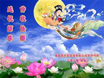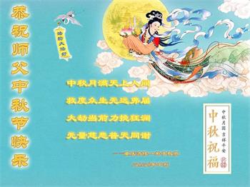 在中秋節到來之際,大法弟子全家向慈悲偉大的師父問好!恭祝慈悲偉大的師父節日快樂!