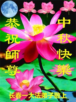 為了宇宙蒼生的安危,為了大法弟子的修煉,您付出的太多太多,師父您辛苦了!在此中秋佳節之際,弟子代表我的家人向偉大的師尊叩拜:祝師父中秋快樂!千言萬語道不盡弟子對師尊的救度與保護之恩,弟子只能用您用巨大的承受延續來的寶貴時間,用心做好三件事,讓您少一份操勞,多一份欣慰,再一次叩拜師尊。