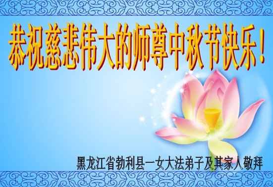 黑龍江省七台河市勃利縣南片一女大法弟子恭祝慈悲偉大的師父中秋節快樂!