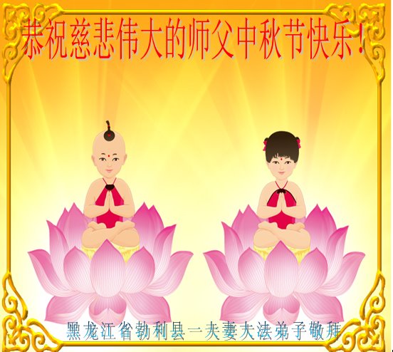 黑龍江省七台河市勃利縣一夫妻大法弟子恭祝師父中秋快樂!