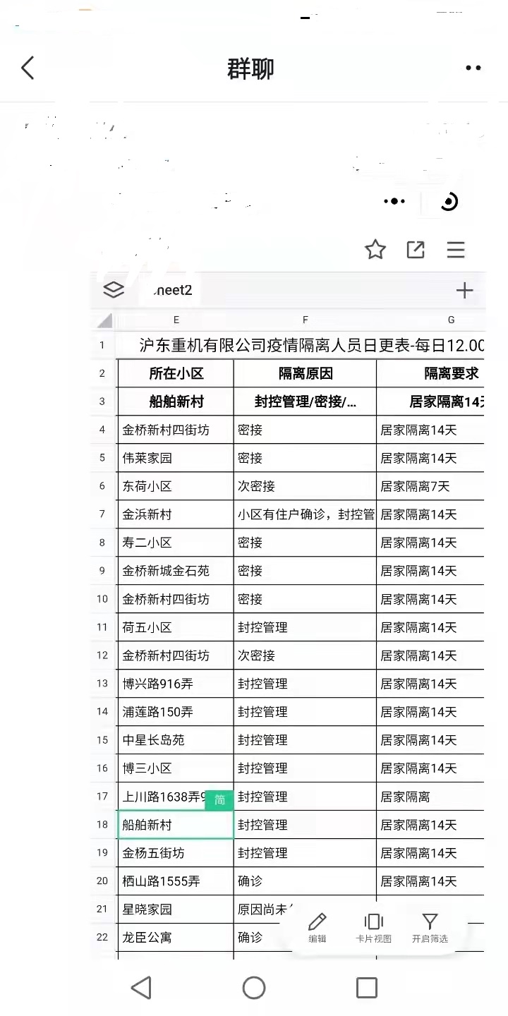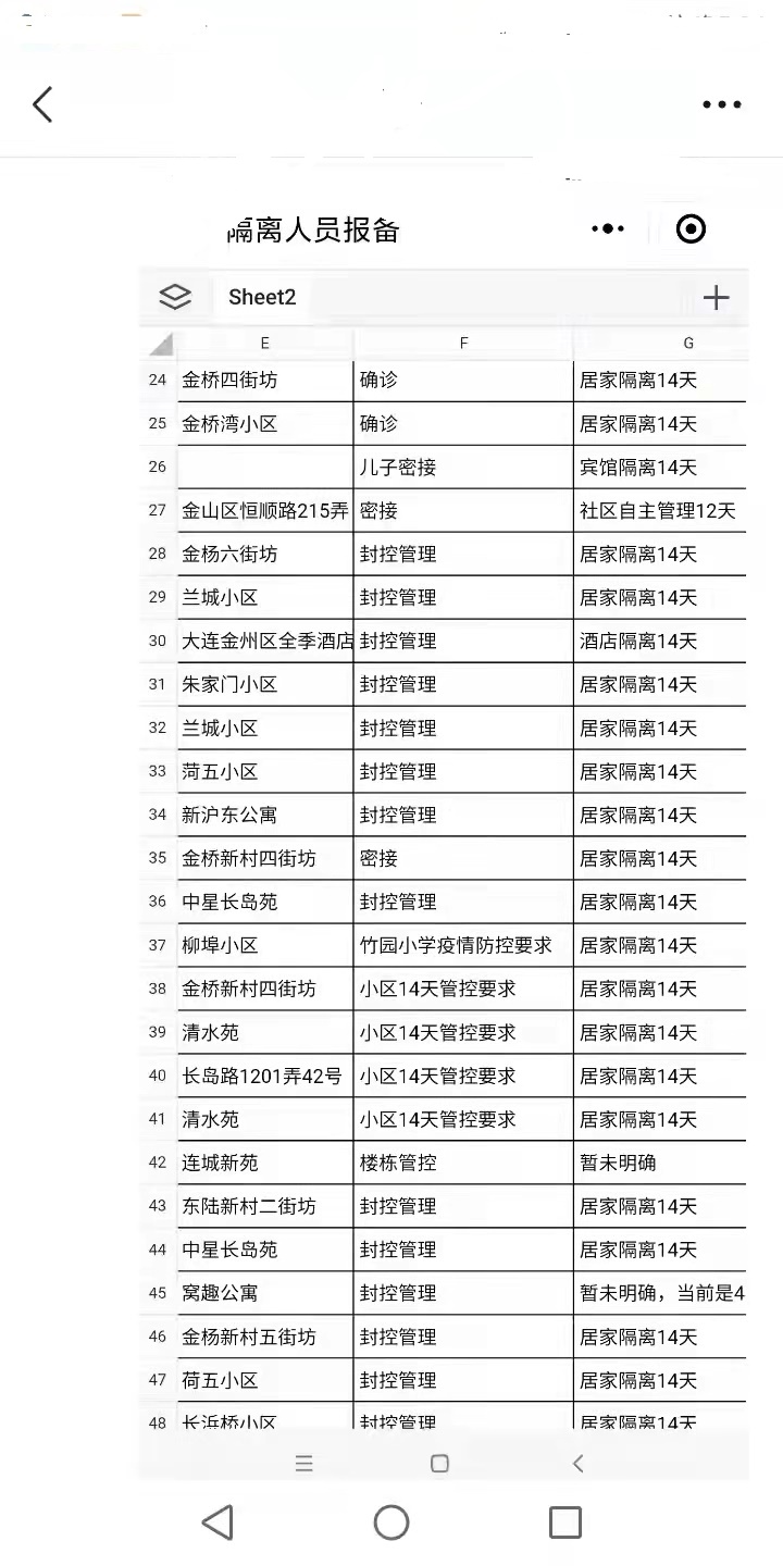 兩張隔離小區的圖片是上海浦東新區浦興街道管轄地區的隔離小區名單節選。