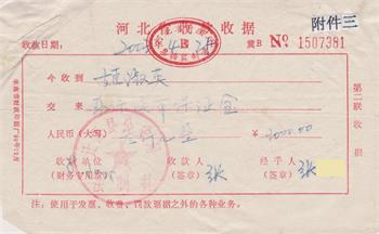 在看守所期間,在我不知道的情況下,遷西縣「610」主任龍立華敲詐勒索我丈夫現金三千元整,並承諾以後還給我丈夫,打了收據。過後給安了個莫須有的罪名,說這錢不還了,作為罰款沒收了。