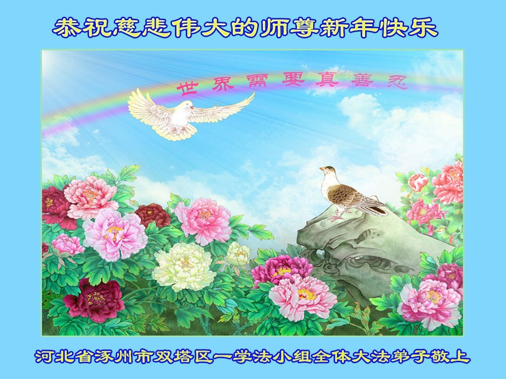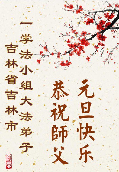 恭賀師尊新年快樂!我們無法用人間的語言來表達師尊的再造之恩,能成為師父的弟子何等榮幸!師尊賜給了我們一切,弟子們唯有勇猛精進,遵師教誨,做好三件事,快救人,多救人,兌現誓約,了卻洪願,隨師回家。大法弟子叩謝師尊!
