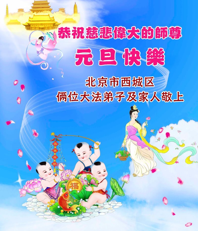 北京大法弟子全家恭祝師尊元旦快樂!感恩師尊慈悲救度。