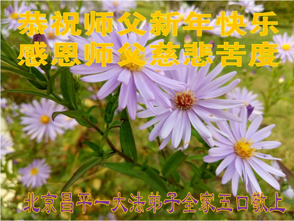 慈悲偉大的師父好!師父您辛苦了!在新年來臨之際,我們全家恭祝師父新年快樂!感謝師父慈悲苦度!感恩師父時時刻刻的慈悲保護!在正法的最後時刻,我們謹遵師父的教誨,嚴格要求自己,兌現自己下世前的神聖誓約。越最後越精進,越最後越不能放鬆,做好三件事。多學法、多發正念,多救人,不辜負師父的慈悲苦度,圓滿隨師還!