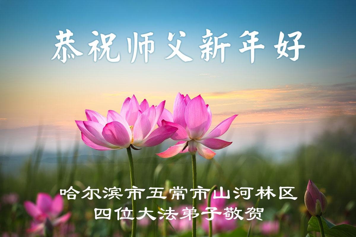 黑龍江省哈爾濱市五常市山河鎮四位大法弟子恭祝師父元旦快樂!
