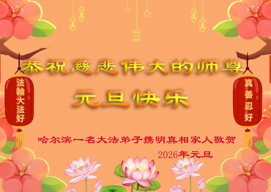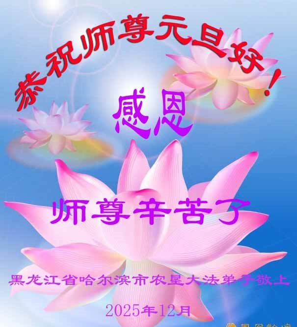 黑龍江省哈爾濱大法弟子學法小組大法弟子祝尊敬的師父二零二六年元旦快樂!感謝師父慈悲救度!