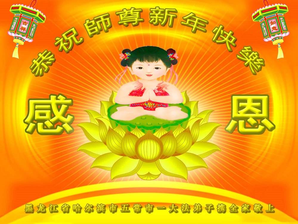 恭祝慈悲偉大的師尊新年快樂!師尊您辛苦了!感恩師尊的慈悲苦度及賜予弟子們成為正法時期的大法徒的神聖稱號!洪恩難報,唯有走正、走好師尊安排的路,精進實修,遇事向內找,多救人、修好自己,完成使命,隨師尊回家!