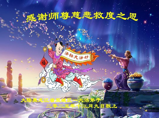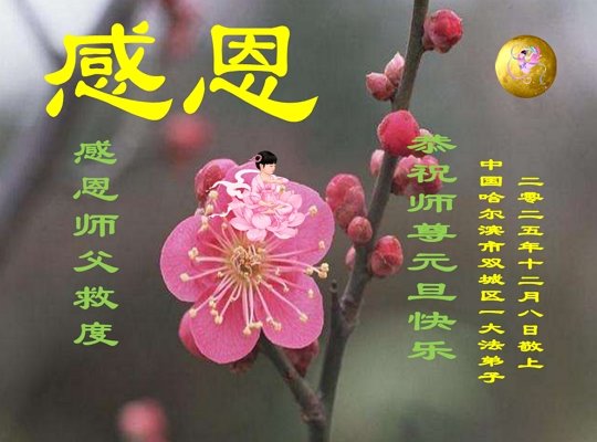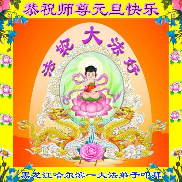 黑龍江哈爾濱一老年大法弟子恭祝慈悲的師尊元旦快樂!