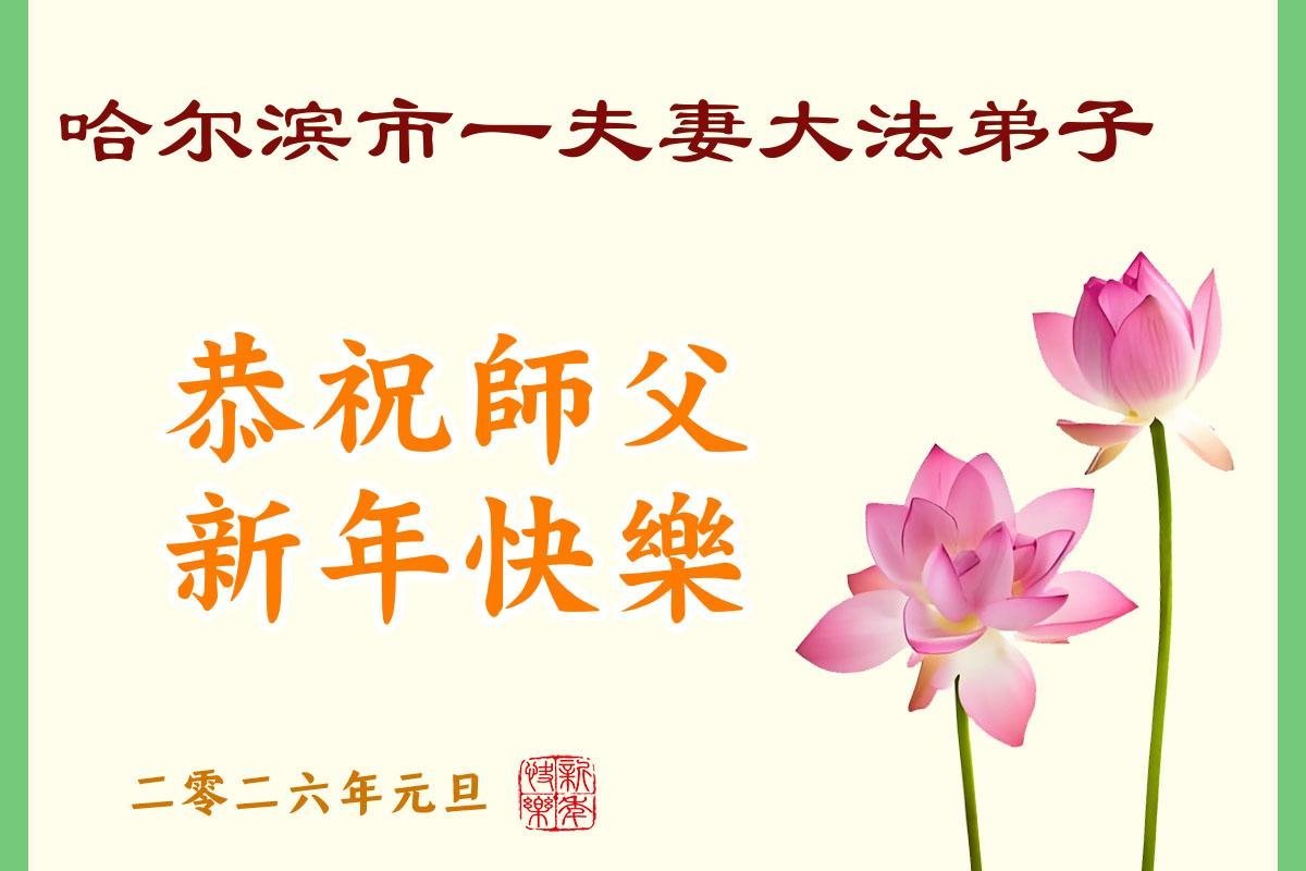 黑龍江省哈爾濱市一夫妻大法弟子恭祝師尊新年快樂!