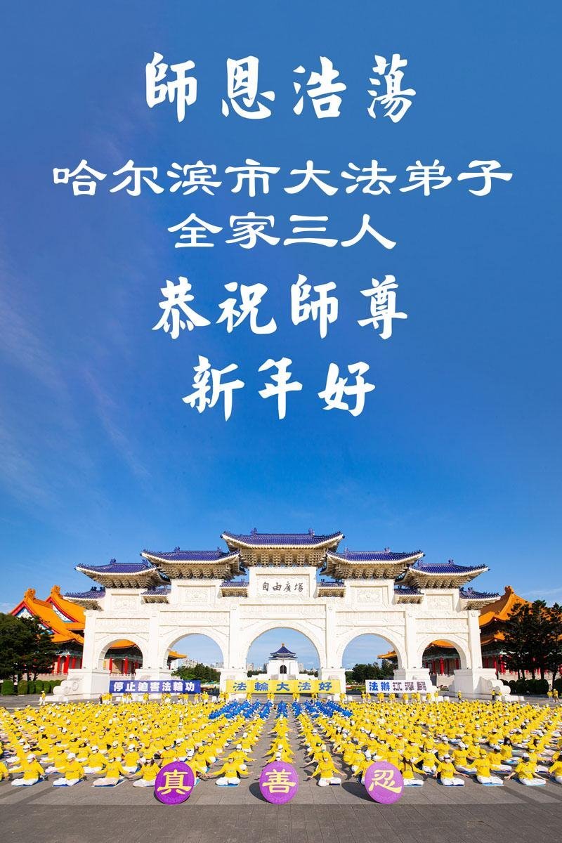 黑龍江省哈爾濱市大法弟子及全家恭祝師父新年快樂!