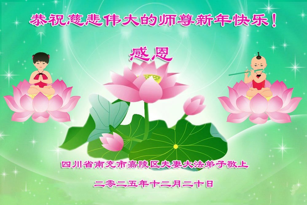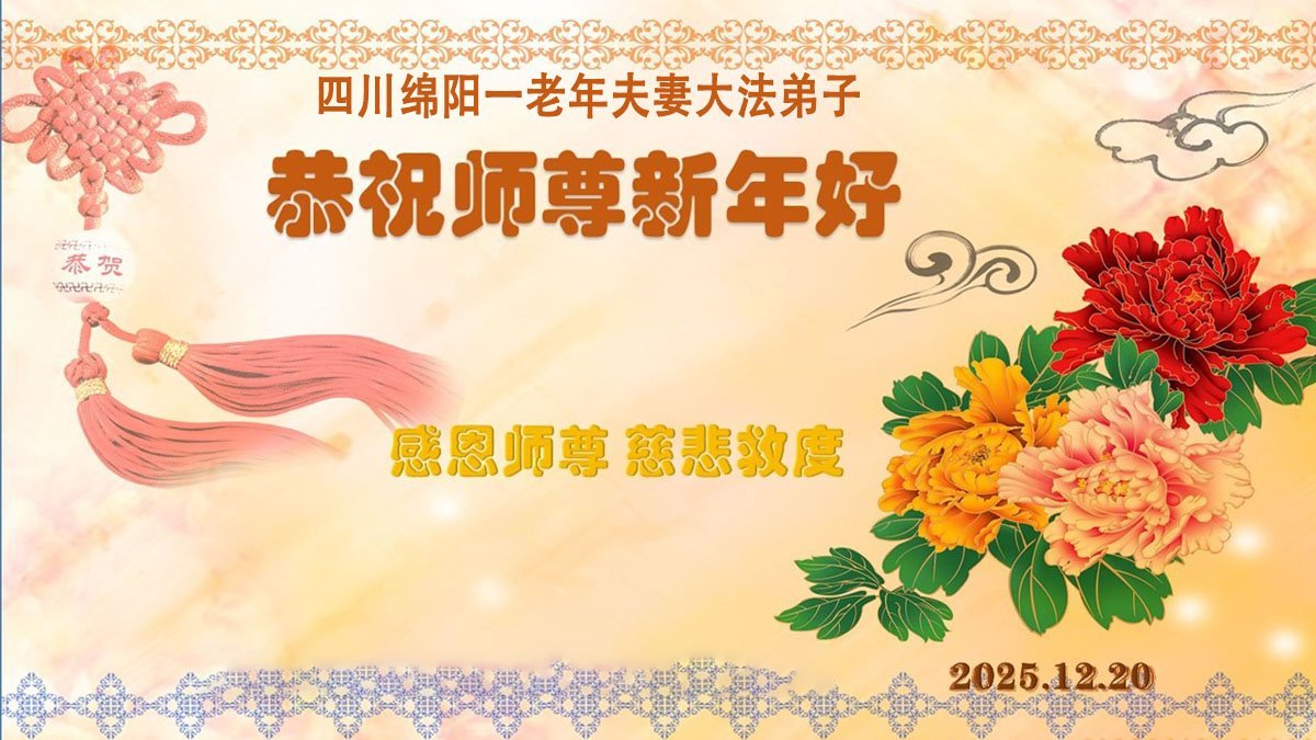 我們夫妻二位大法弟子向慈悲偉大的師尊敬拜新年好!恭祝師尊2026年新年快樂!法輪大法好!真、善、忍好!感恩師尊的救度之恩!