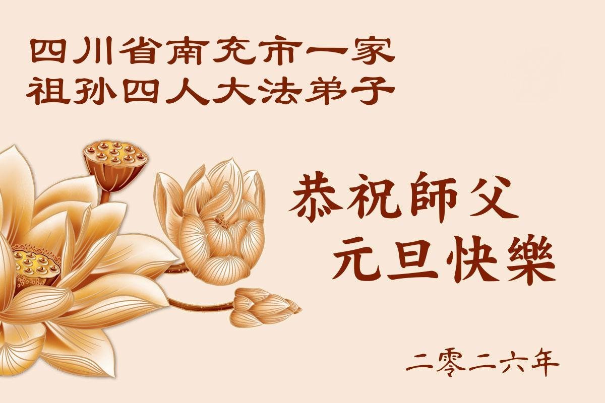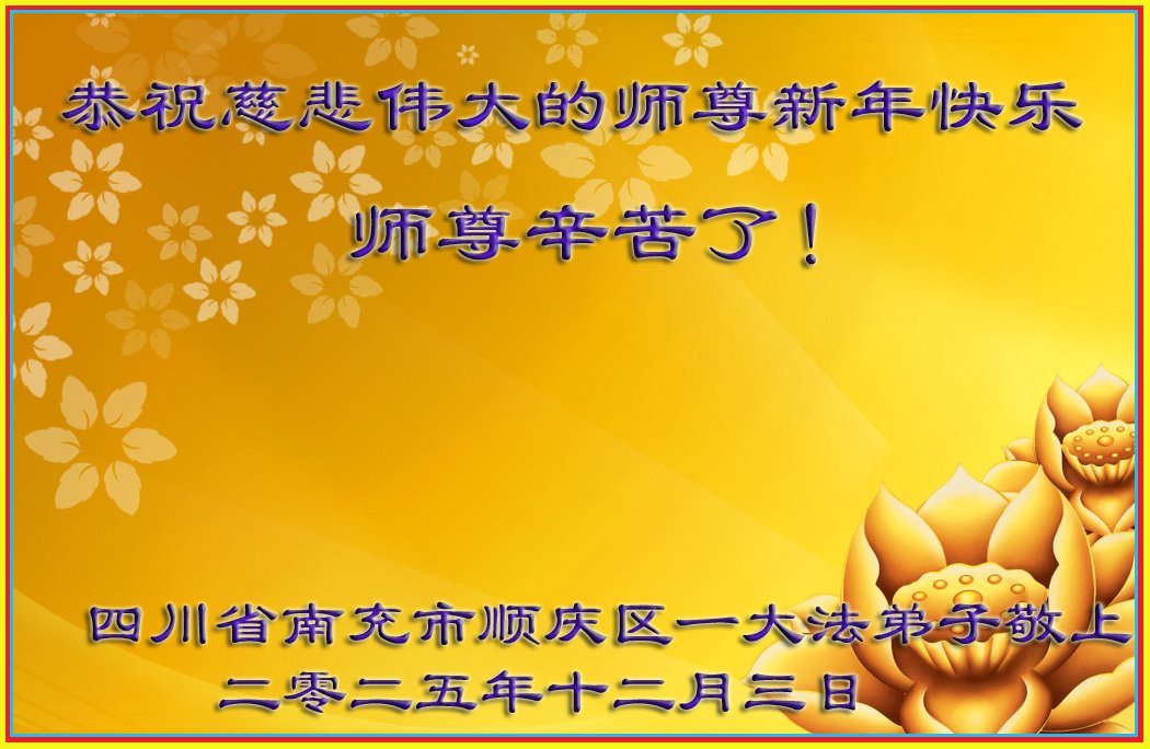 師父您辛苦了!每逢佳節倍思親,2026年元旦即將到來之時,全體大法弟子恭祝慈悲的師尊元旦快樂!在新的一年裏,我們更加學好法,遇事向內找,修好自己,做好三件事,多救人,不辜負師父的慈悲苦度,跟師父回家。