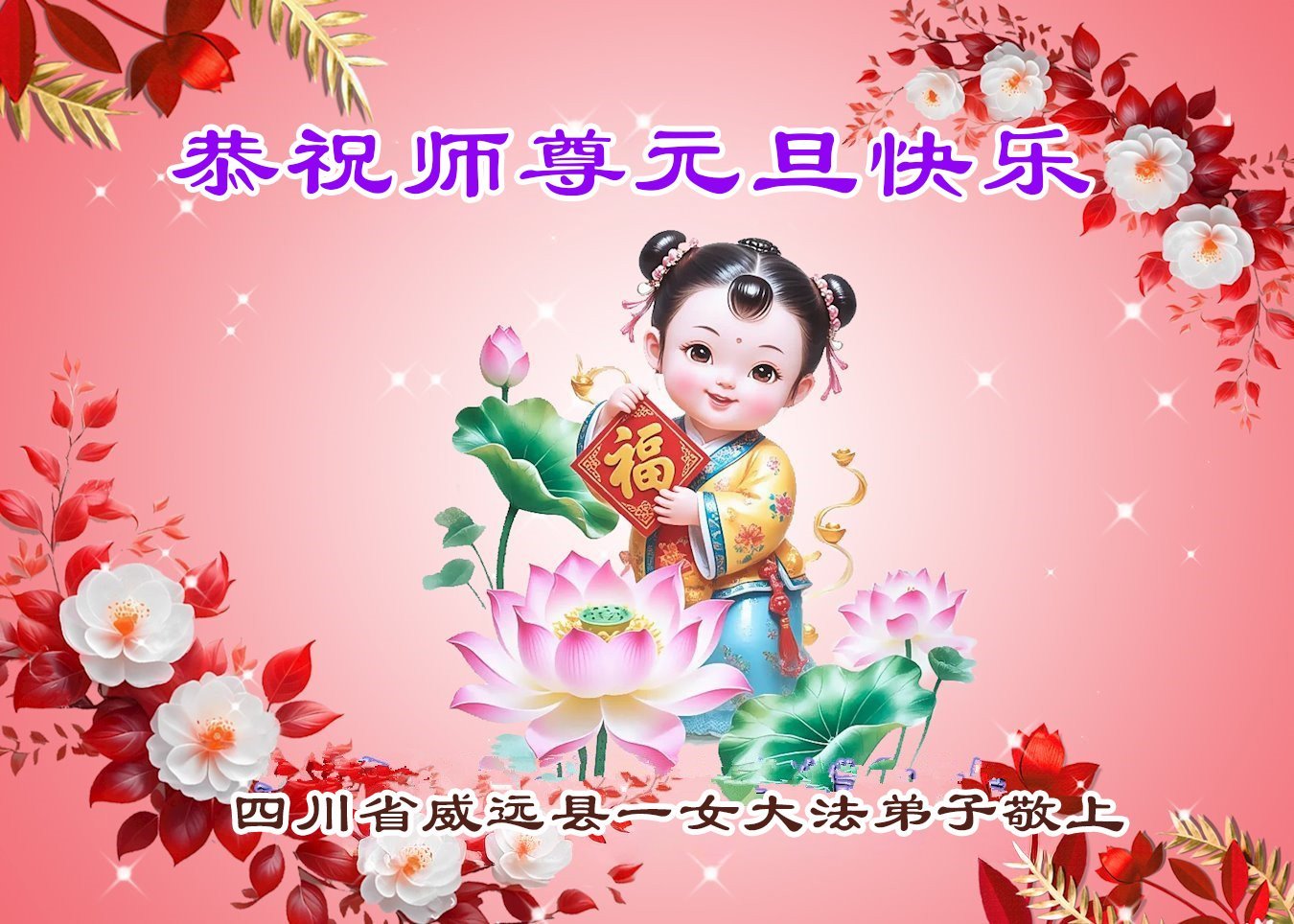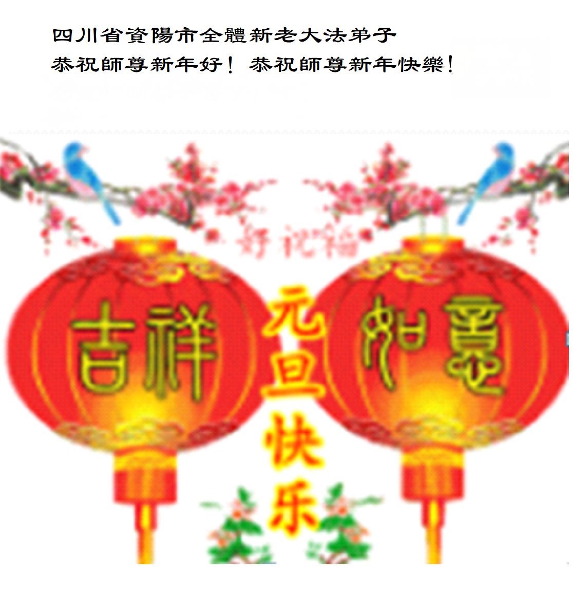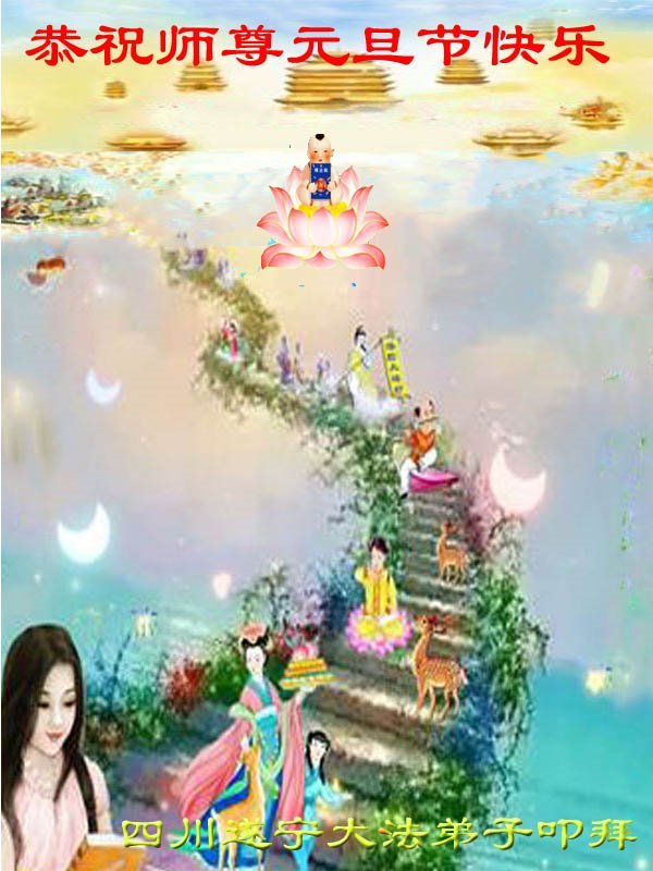值此新年到來之際,向慈悲偉大的師尊問好!恭祝慈悲偉大的師尊元旦快樂!感恩師尊的慈悲救度!期盼和師尊早日團聚的那一天!弟子一定堅定實修,決不辜負師尊的教誨!