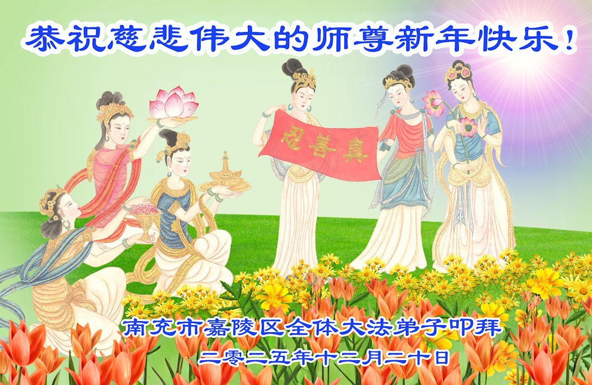 師父您辛苦了!2026年元旦即將到來之時,我們全體大法弟子恭祝慈悲的師尊元旦快樂!在新的一年裏,我們更加學好法,遇事向內找,修好自己,做好三件事,多救人,不辜負師父的慈悲苦度,跟師父回家。