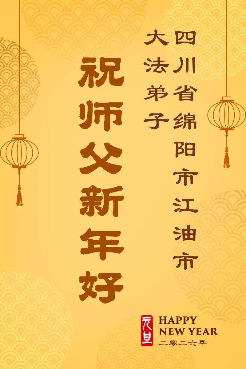 四川綿陽市一大法弟子及全家人敬上