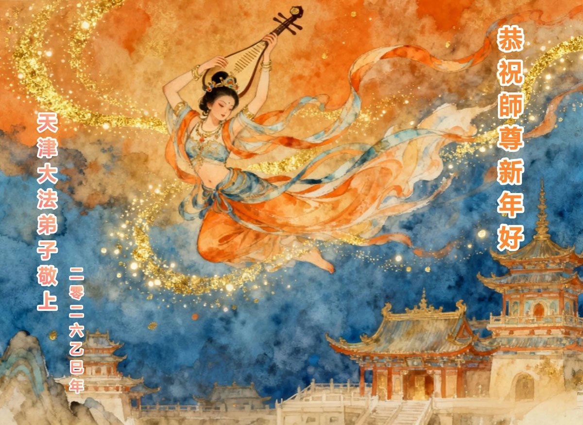 在新的一年到來之際,弟子們恭祝師父新年快樂!我們會更加努力做好三件事,回報師父的慈悲苦度!感恩師父!感恩大法!