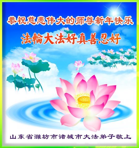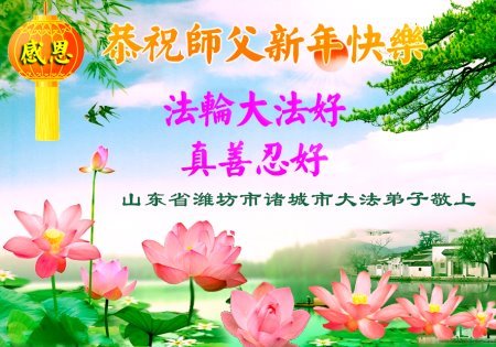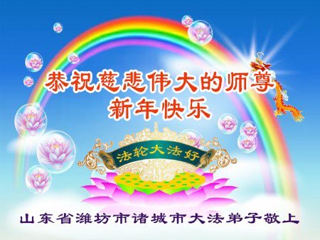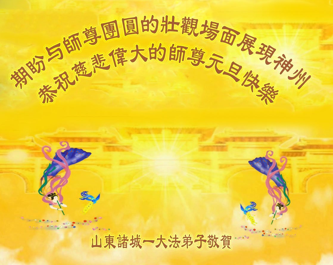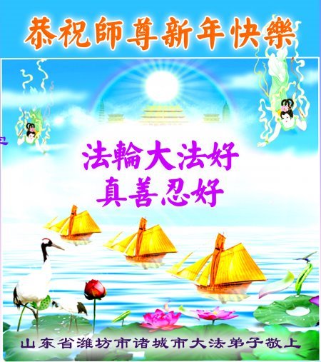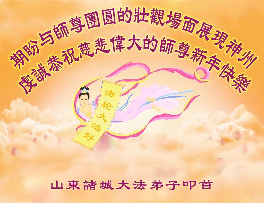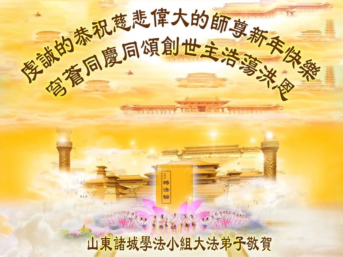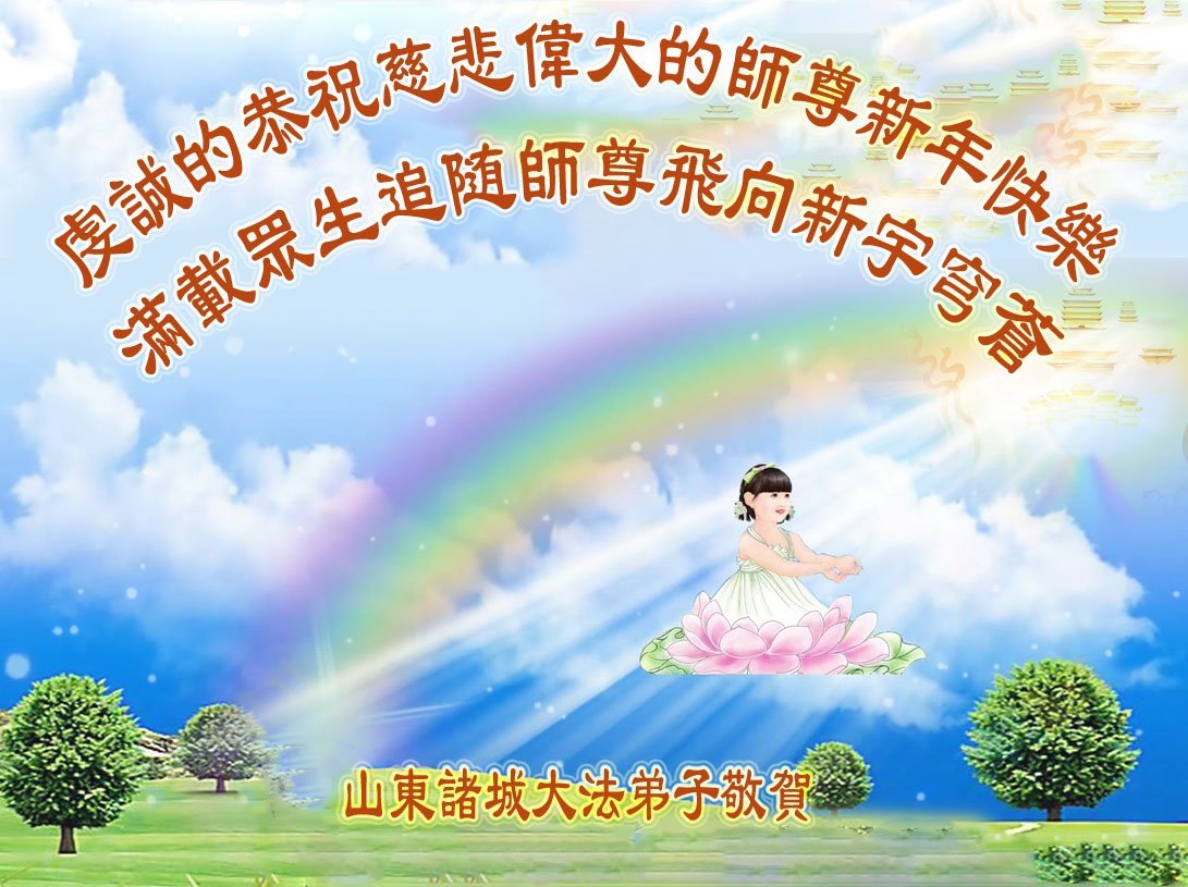 值此新年來臨之際,山東章丘大法弟子恭祝師尊新年快樂!在法正人間到來前不多的時間裏,弟子一定牢記師尊的教導,精進實修,穩步走好最後的路,圓滿隨師還!