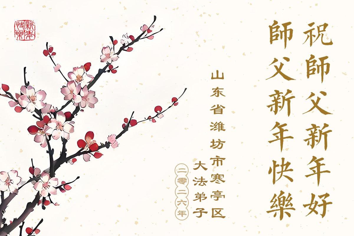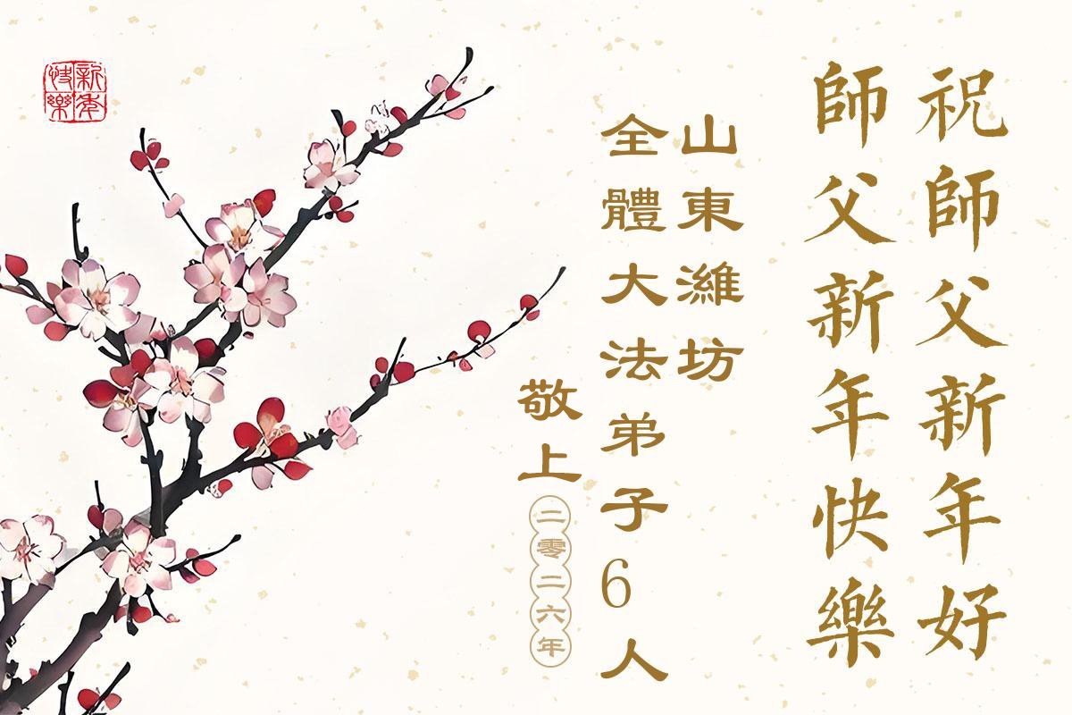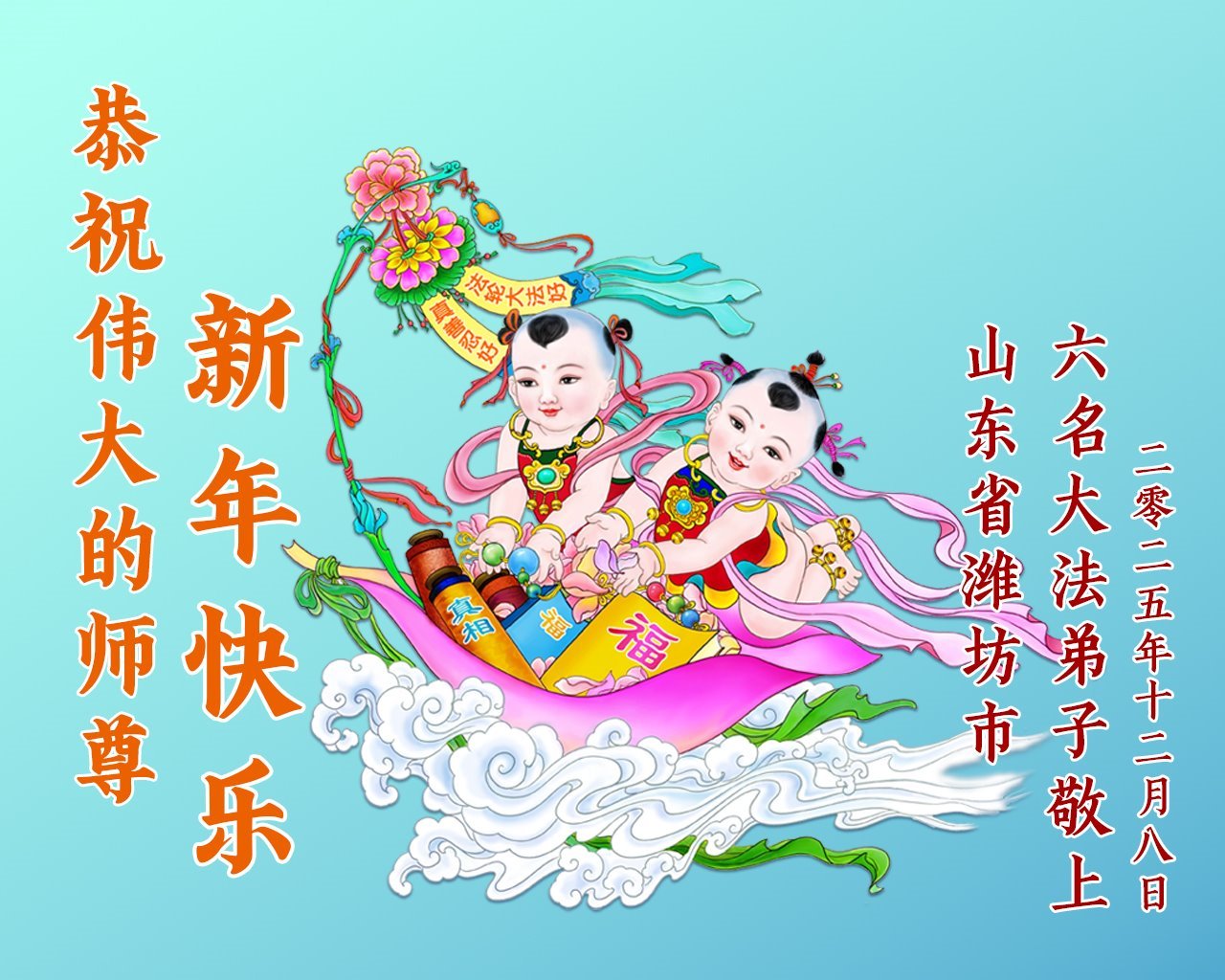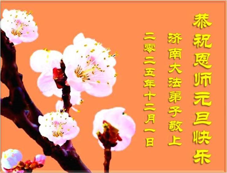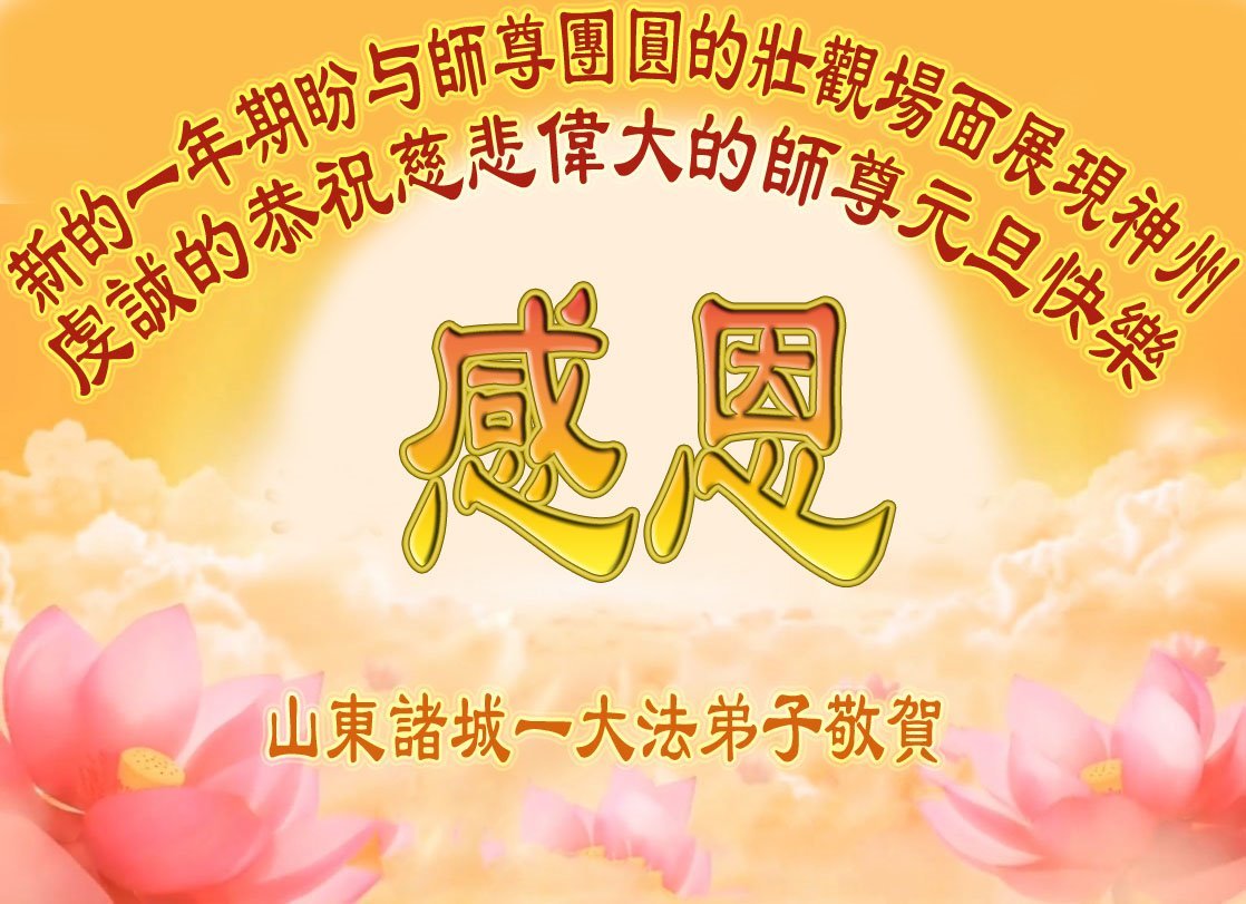 值此新年來臨之際,山東章丘大法弟子恭祝師尊新年快樂!在法正人間到來前不多的時間裏,弟子一定牢記師尊的教導,精進實修,穩步走好最後的路,圓滿隨師還!