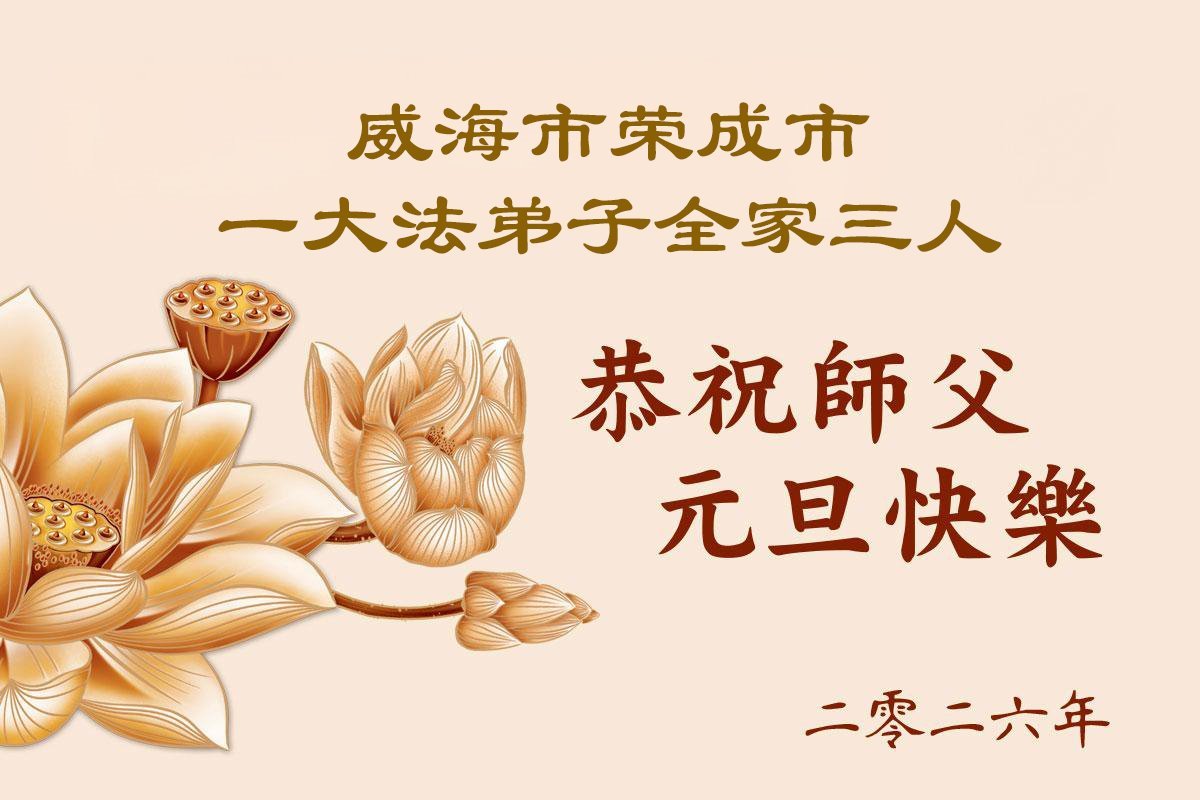 山東省威海市文登區一家三位大法弟子恭祝慈悲偉大師父新年快樂!