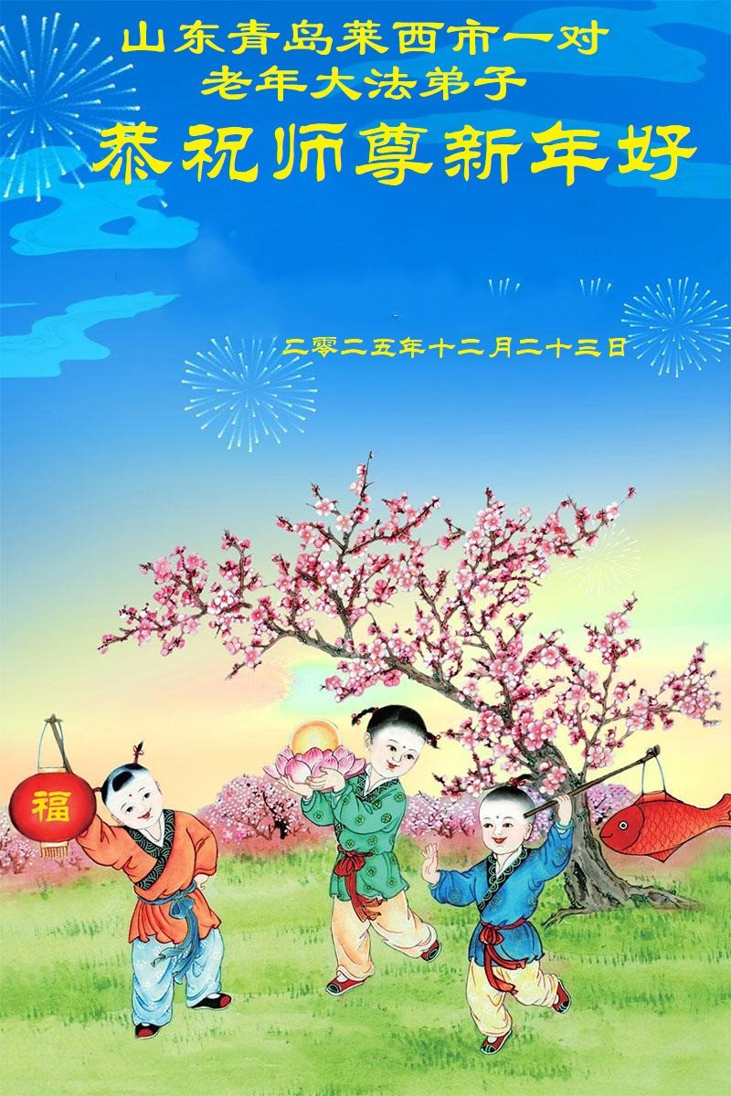 山東省青島萊西市一對老年大法弟子恭祝師尊新年好!