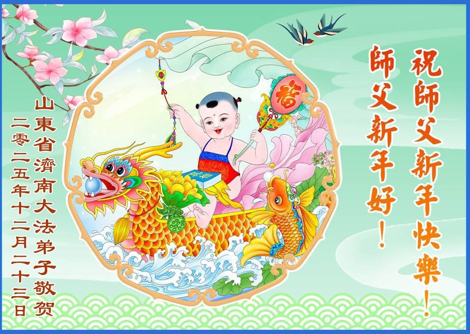 山東省濟南市一大法弟子恭祝慈悲偉大的師尊元旦快樂!