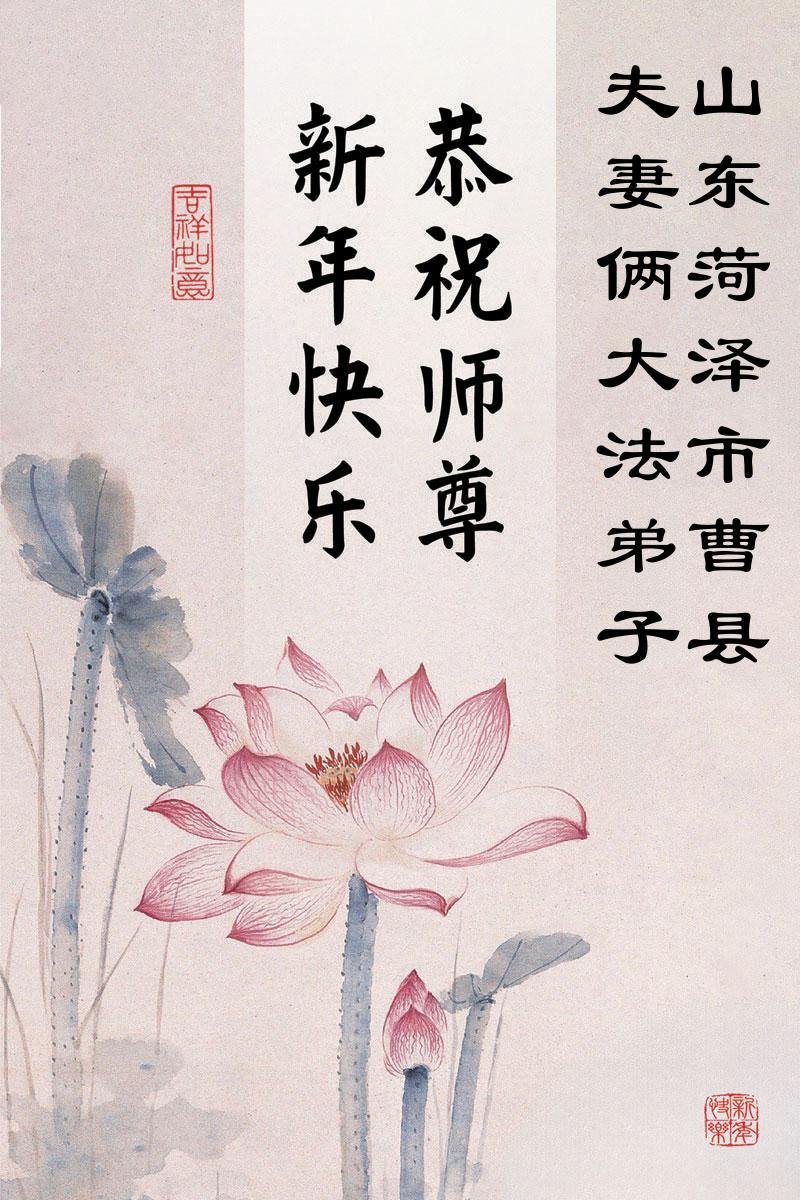 山東省菏澤市曹縣夫妻倆大法弟子恭祝慈悲的師尊新年快樂!