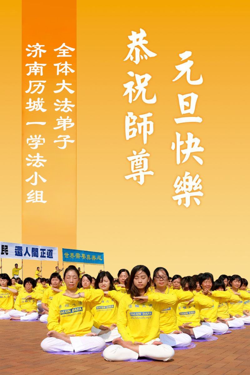 山東省濟南市歷城區一學法小組九名大法弟子恭祝偉大的師尊元旦快樂!