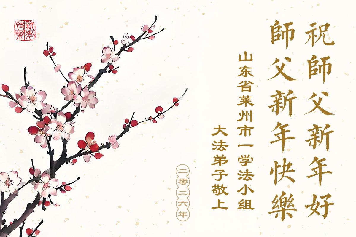 山東省煙台市萊州市一學法小組大法弟子恭祝師尊新年好!