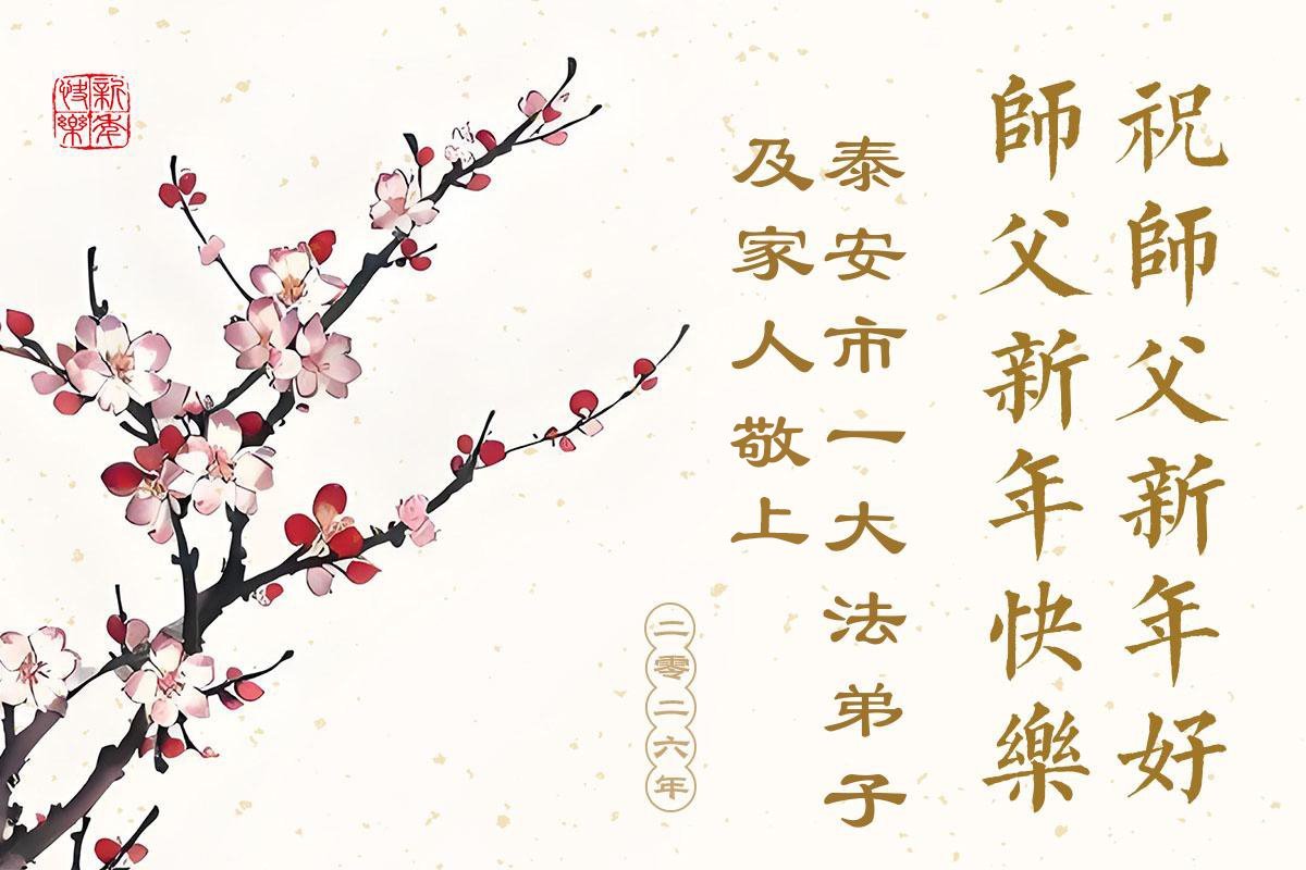 山東省泰安市大法弟子恭祝慈悲偉大的師尊新年好!