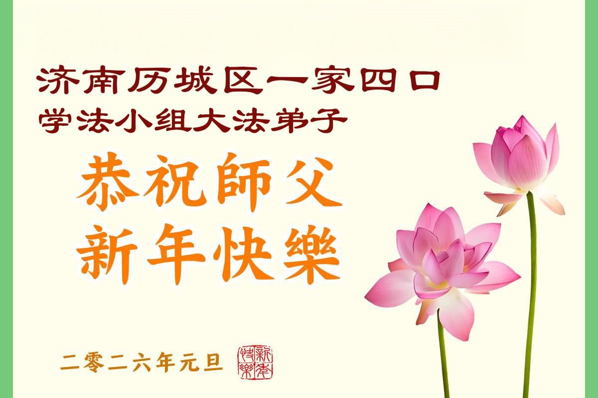 山東省濟南市一學法小組五位大法弟子恭祝師尊新年快樂!