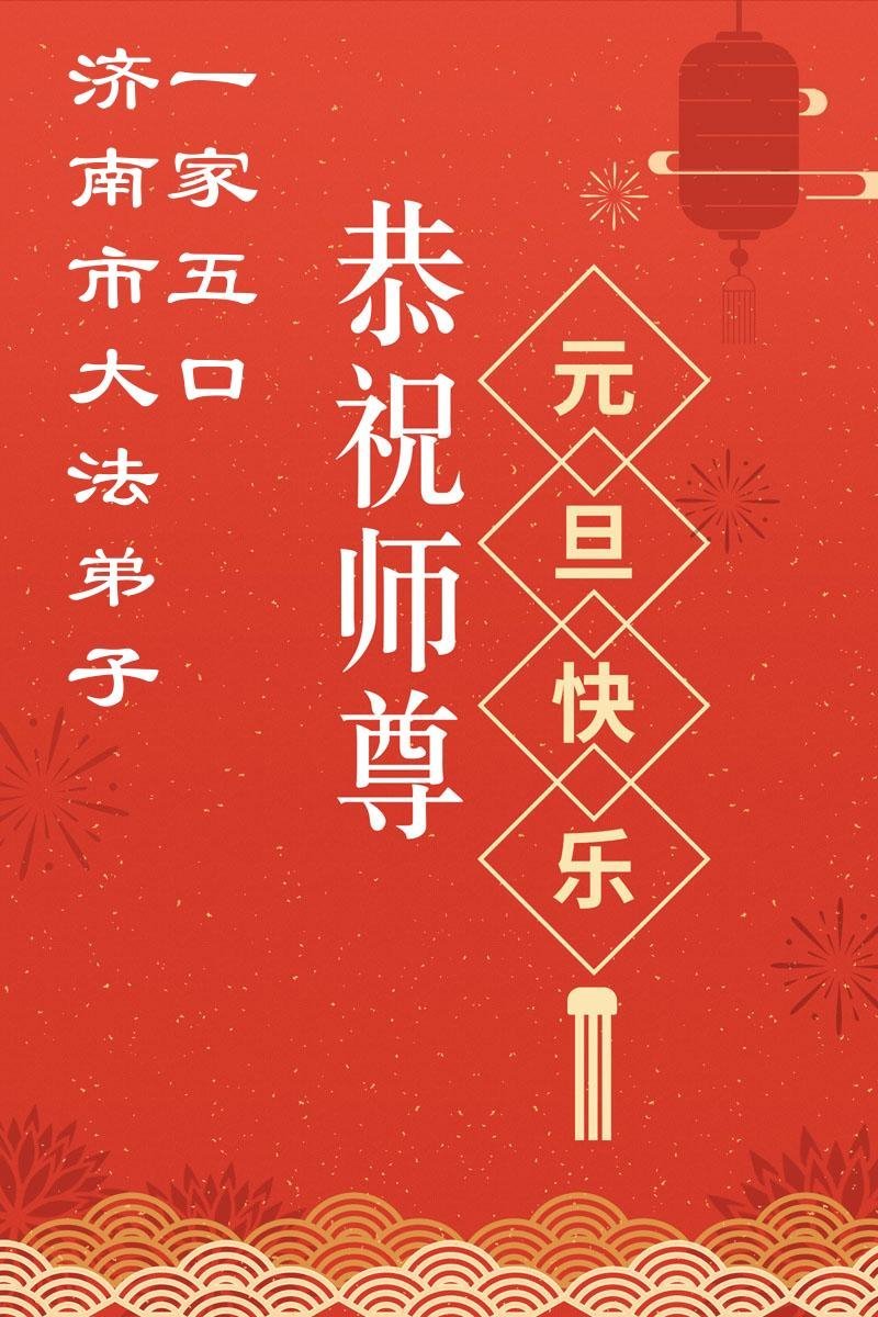 山東省濟南市天橋區一老年大法弟子攜全家恭祝師父元旦快樂!